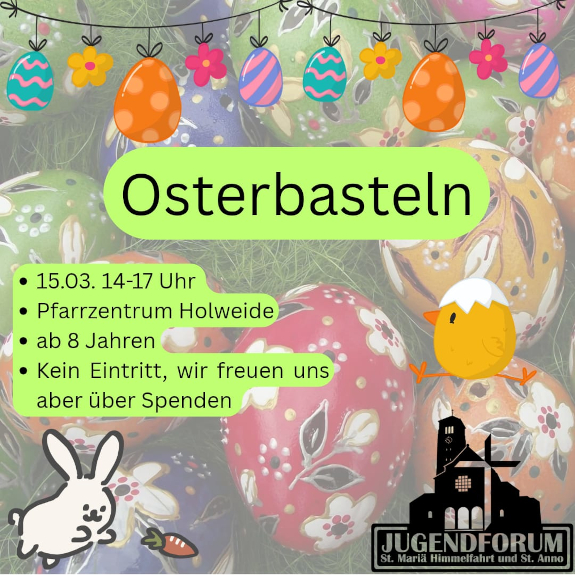 Herzliche Einladung an alle Kinder ab 8 Jahren zum Osterbasteln am 15.03. von 14-17 Uhr!
