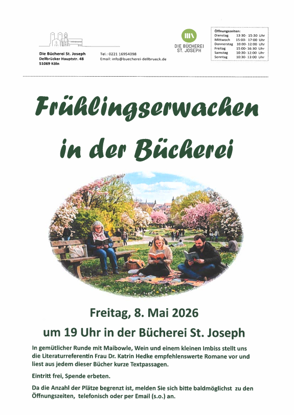 Öffnungszeiten: Mo, Di, Do und Fr 9.00 bis 11.00 Uhr und nach Vereinbarung