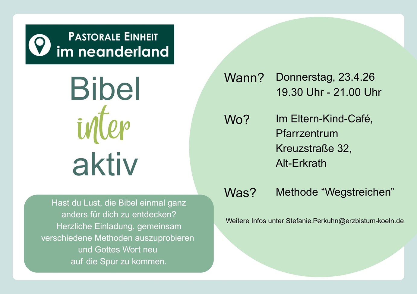 Die Pastorale Einheit im neanderland wird sich zu einer Pfarrei zusammenschließen