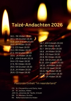 Am Mittwoch, 11. Februar um 20 Uhr findet in St. Johannes der Täufer ein meditatives Gebet bei Kerzenlicht statt.