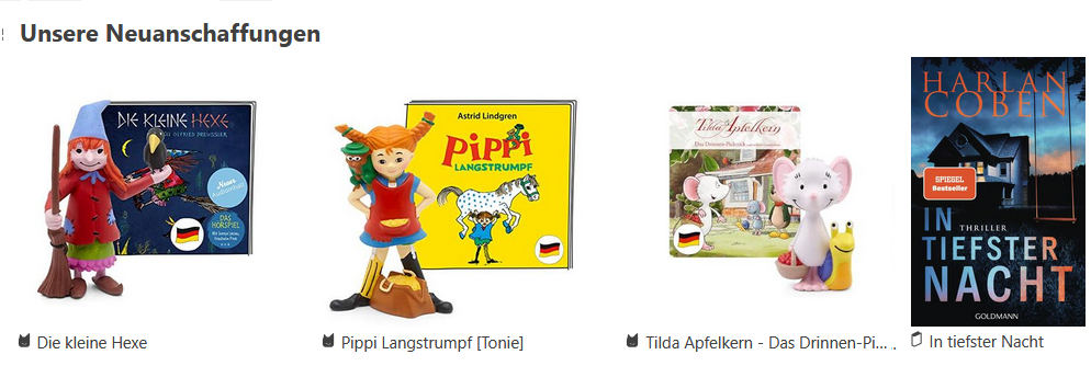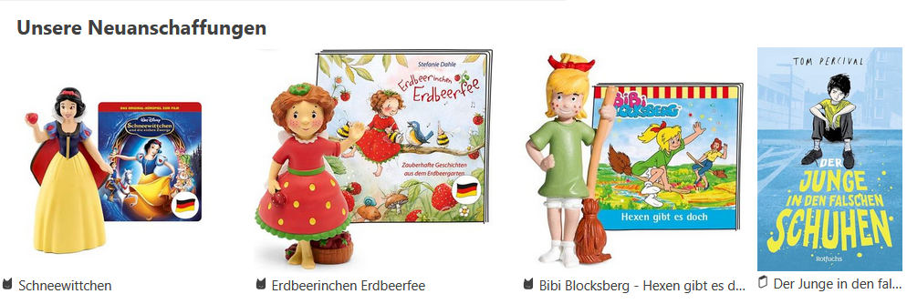 Die Tonies ergänzen die bereits in unserer Bücherei zur Ausleihe angebotenen tiptoi-Bücher.