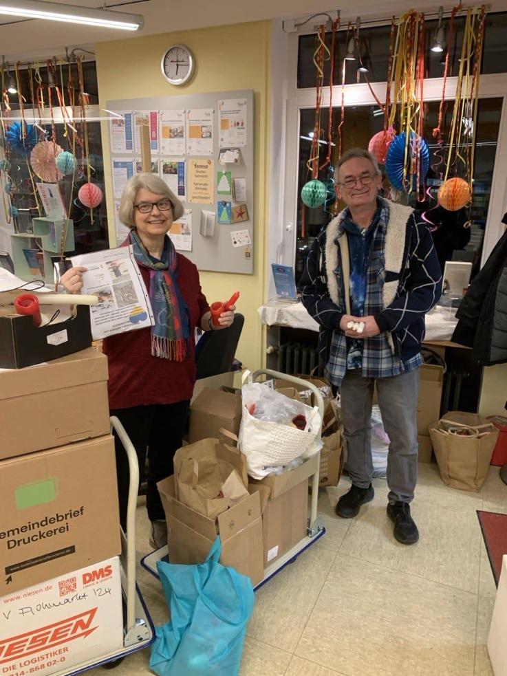 Foto oben: Ralf Link (dobre) bei der Wachsabholung mit Anne Siebertz (Bücherei)