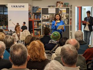 Volles Haus in der Bücherei: Beim Kultur- und Infoabend Ende Januar informierten die beiden Vereine "Blau-gelbes Kreuz e.V." und "dobre e.V." die BesucherInnen über die Situation in der Ukraine, erklärten, was es mit dem Kerzen sammeln auf sich hat und brachten dem Publikum die ukrainische Kultur mit eindrucksvollen musikalischen Darbietungen von Svitlana Kavka mit ihrer Bandura und kleinen landestypischen Speisen näher. Die Sprachgruppe der Bücherei rundete zweisprachig mit einem Buchvortrag ab. Ein voller Erfolg!