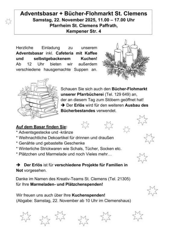 Adventsbasar + Bücher-Flohmarkt St. Clemens