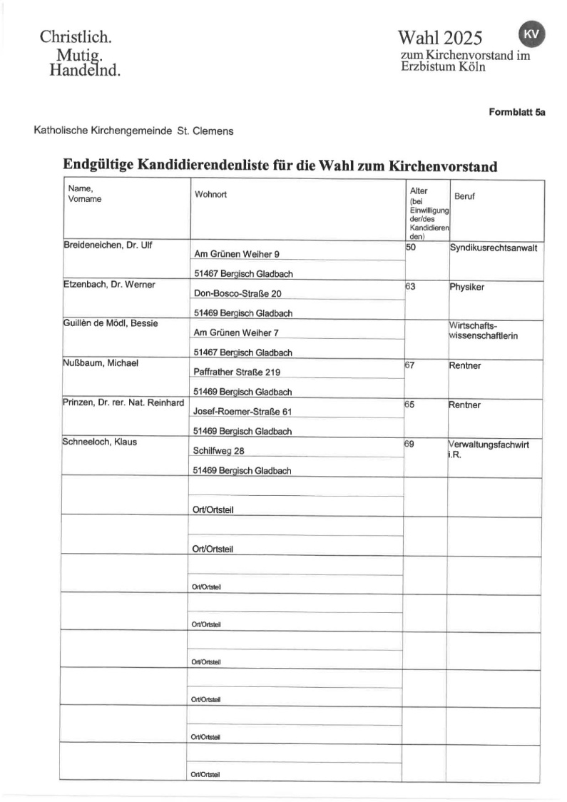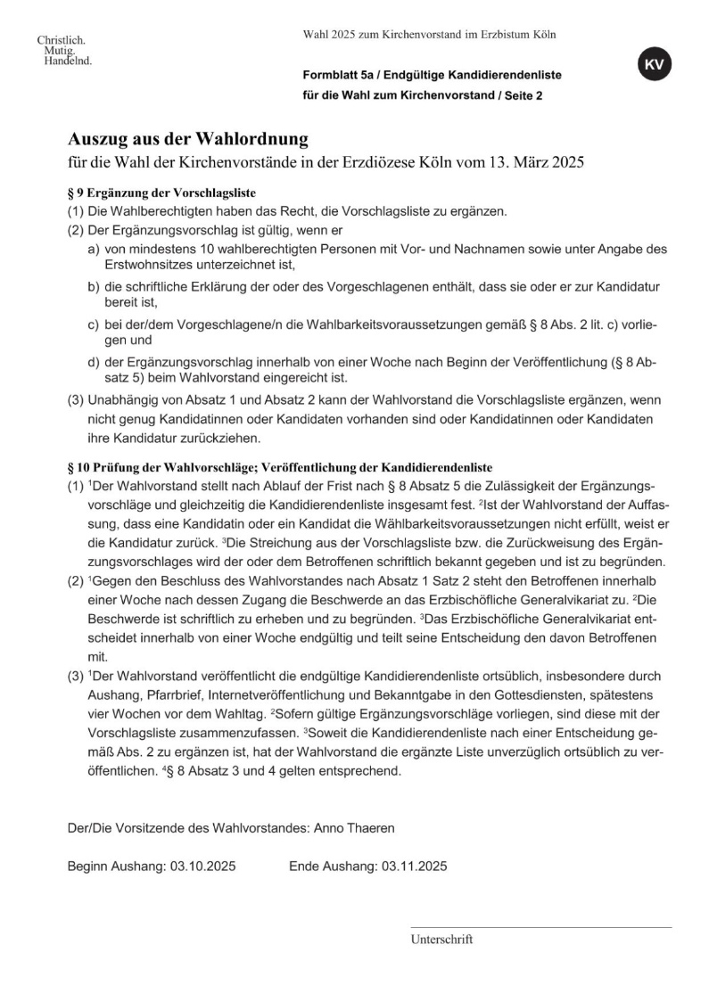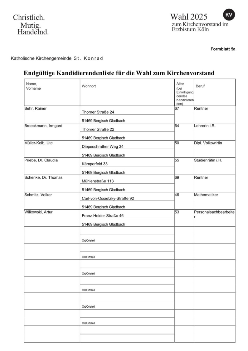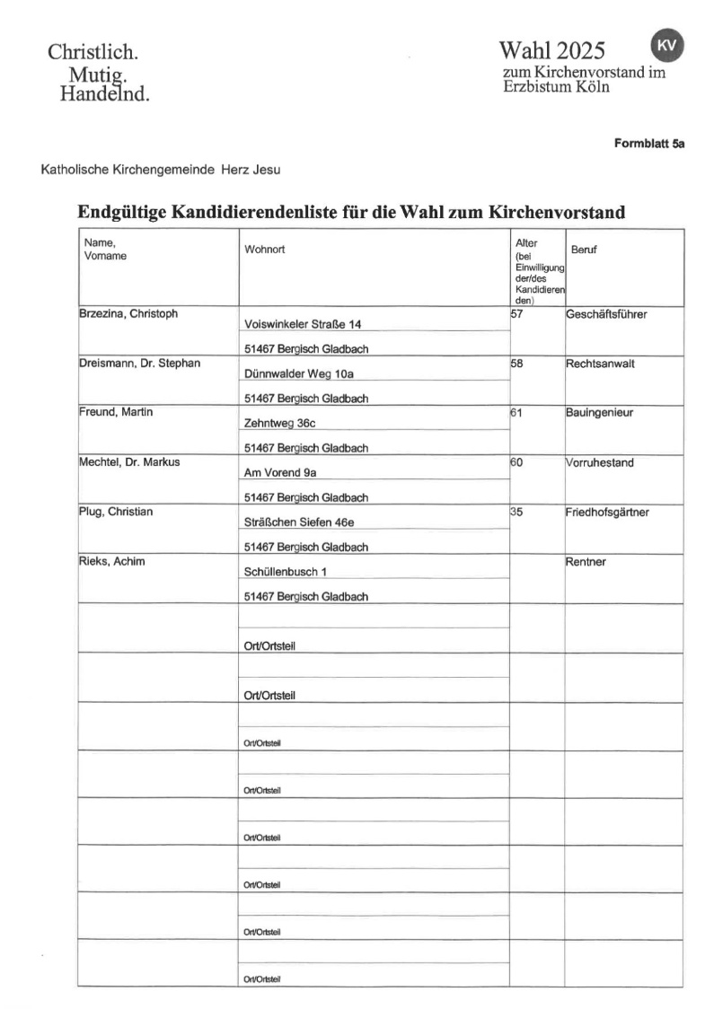 Am 1./2. und 8./9. November wählen wir für die Pfarreiengemeinschaft Bergisch Gladbach-West (Hand, Paffrath und Schildgen) die neuen Mitglieder für den Pfarrgemeinderat und den Kirchenvorstand.