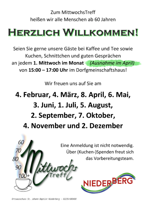 Egal ob regelmäßig oder nur ab und zu, egal ob aus Niederberg oder den umliegenden Gemeinden: Jede und jeder ist herzlich willkommen!