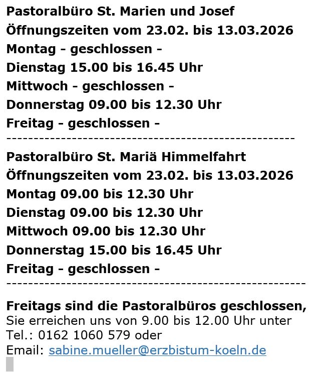 Öffnungszeiten der Pastoralbüros