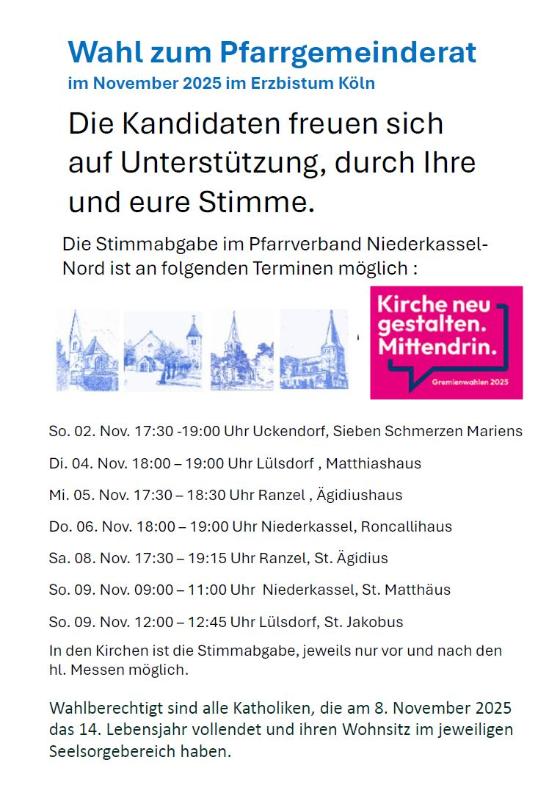 Bürozeiten des Pastoralbüros in Lülsdorf: