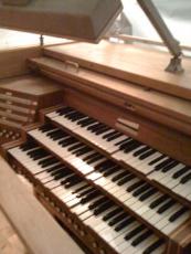 zwei-manualige Pedalharmonium aus dem Hochchor zur Verfügung.